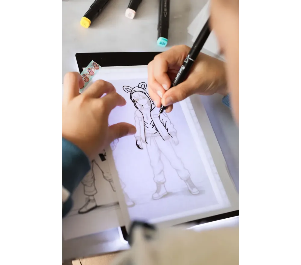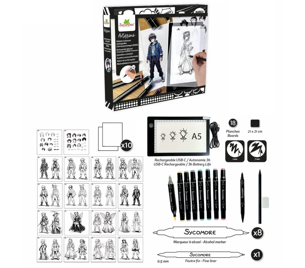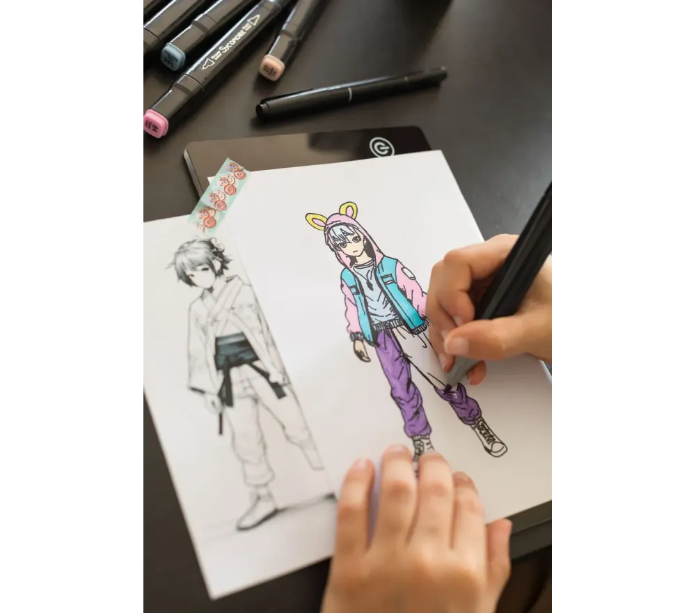 La tavoletta retroilluminata consente di tracciare e curare in ogni dettaglio i propri personaggi. I pennarelli marker doneranno colori vivaci e intensi, rendendo i manga ancora più realistici e ricchi di carattere.