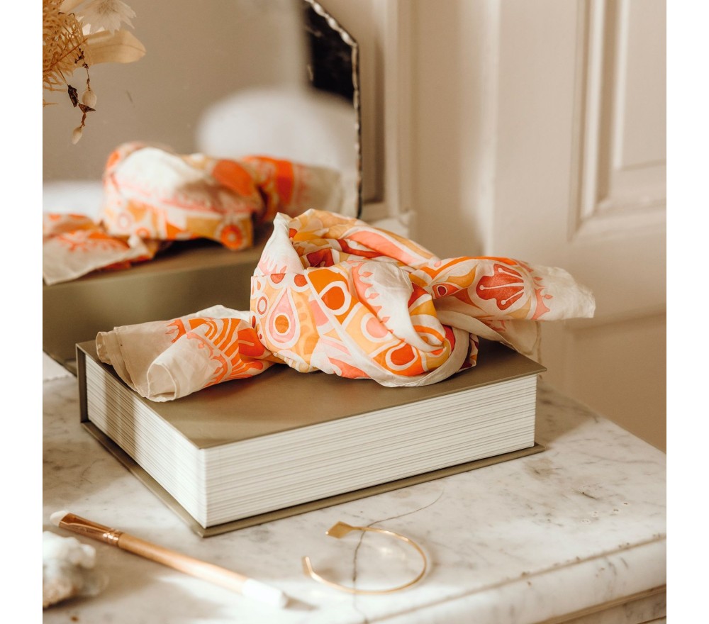 Realizzerete un lungo foulard di seta, una creazione unica da indossare con orgoglio o da offrire in regalo.
