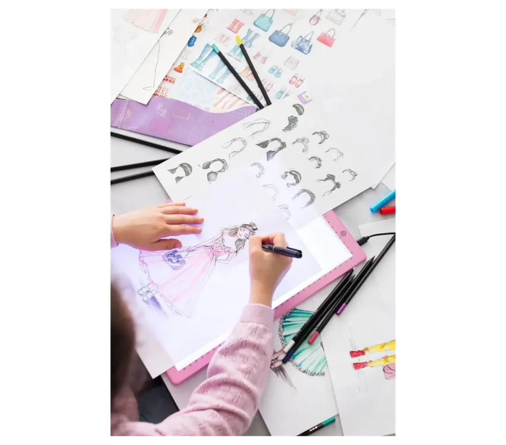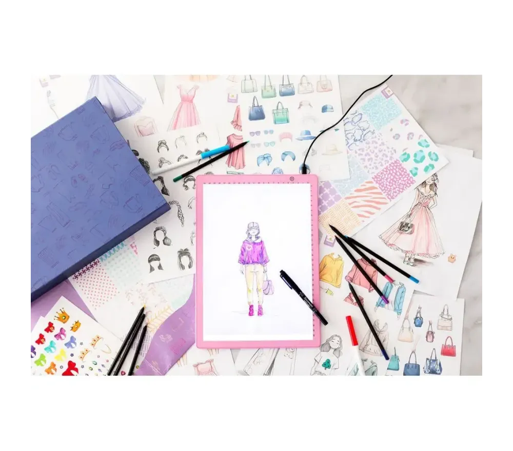 Un vero e proprio studio di stilista per creare meravigliosi outfit alla moda. Grazie alla tavoletta con fondo luminoso e ai numerosi accessori potrai inventare, disegnare e personalizzare outfit come una vero stilista!