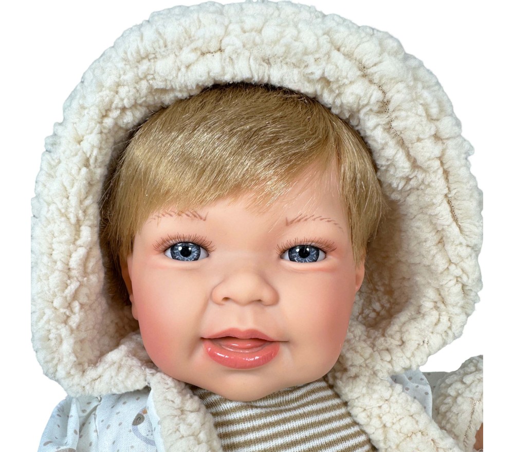 Susi è una simpaticissima bimba con un sorriso contagioso! Indossa un morbidissimo e caldo completino con stampa di animaletti e rifiniture in pellicciotto.