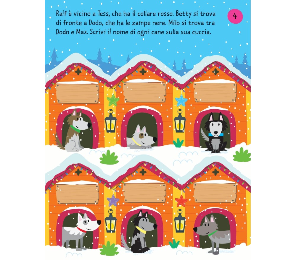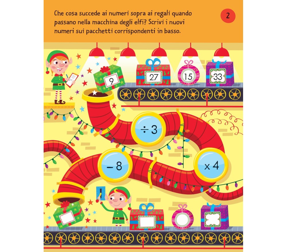 Stracolmo di pupazzi di neve, renne e rametti di vischio, questo libro di attività comprende più di 100 giochini per intrattenere i bambini nel periodo delle feste. Tra le tante attività anche parole intrecciate a tema natalizio, un labirinto di ghiaccio e indovinelli festivi.
