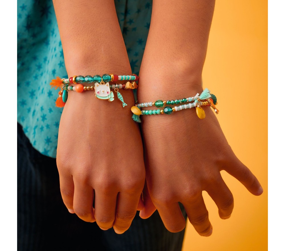 Un braccialetto di qualità, in acrilico e metallo con filo elastico doppio, dal design curato e adorabile. Diametro 5 cm.