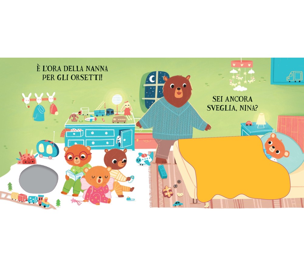 Chi si nasconde sotto queste morbide copertine? Quattro orsetti che non hanno proprio voglia di andare a dormire! Una pagina alla volta, i più piccoli dovranno mettere a letto gli orsetti, rimboccando le coperte a ognuno di loro. La combinazione perfetta di risate e coccole per l'ora della buonanotte.