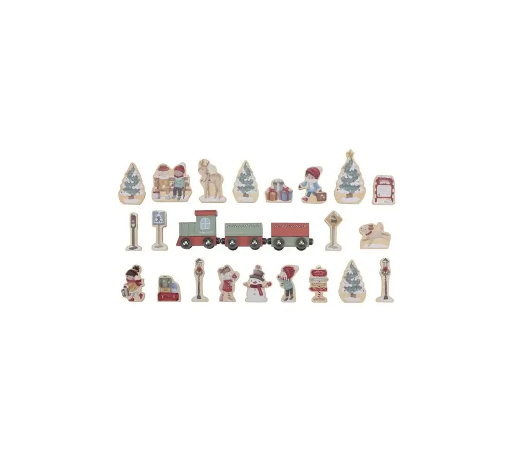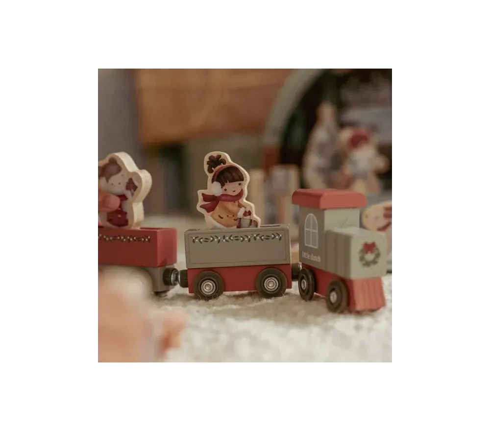Calendario dell'avvento con trenino e personaggi in legno