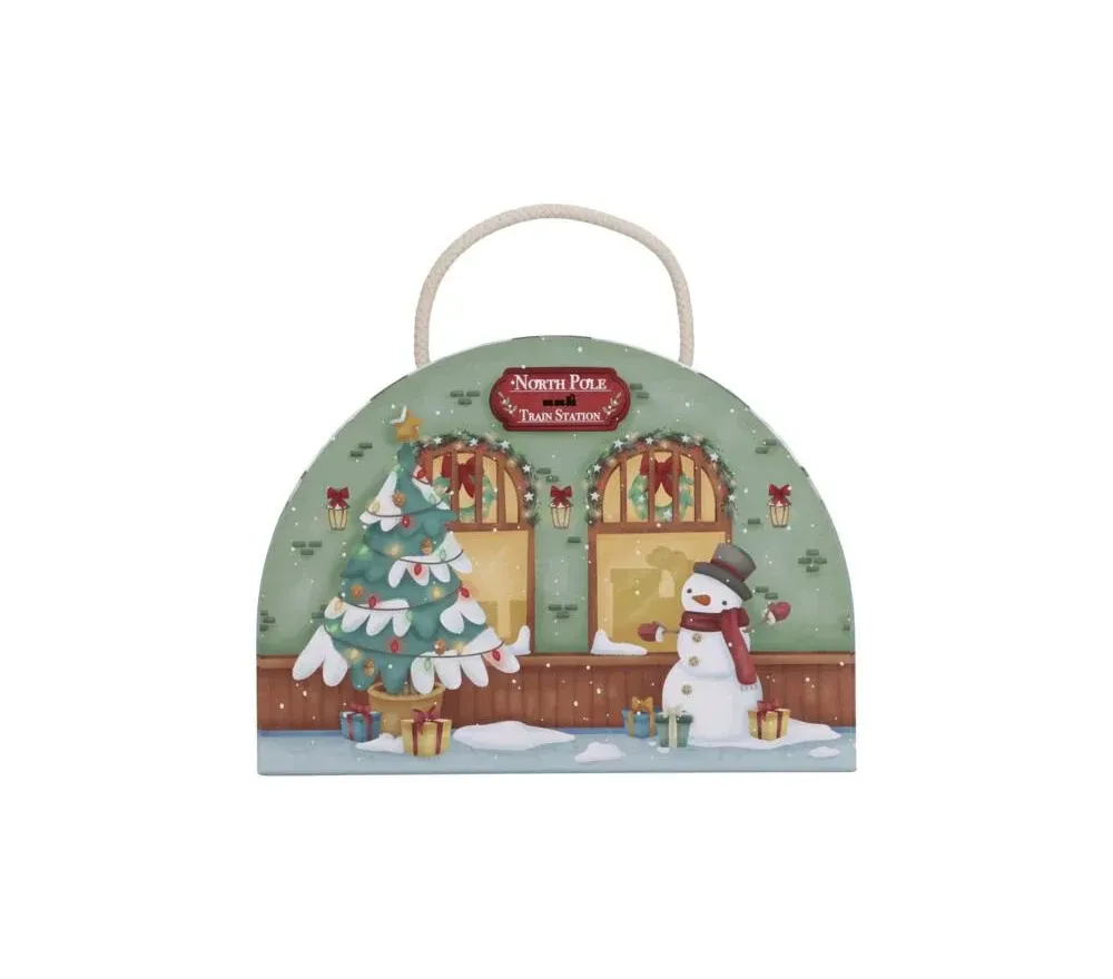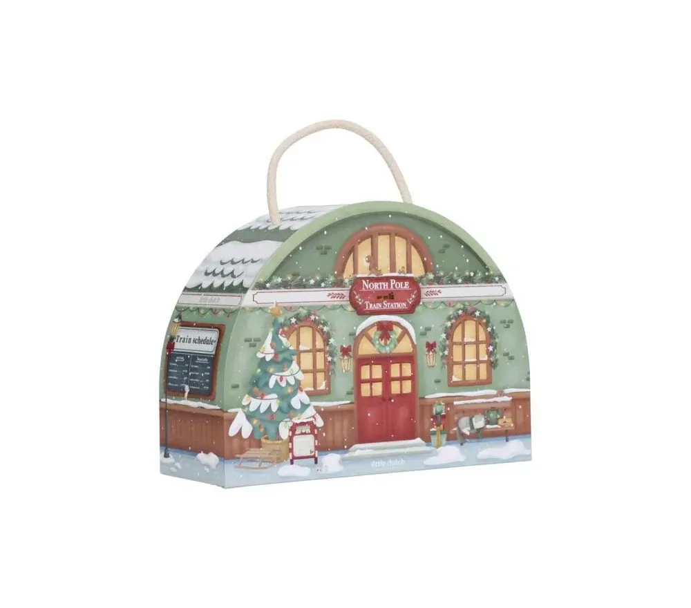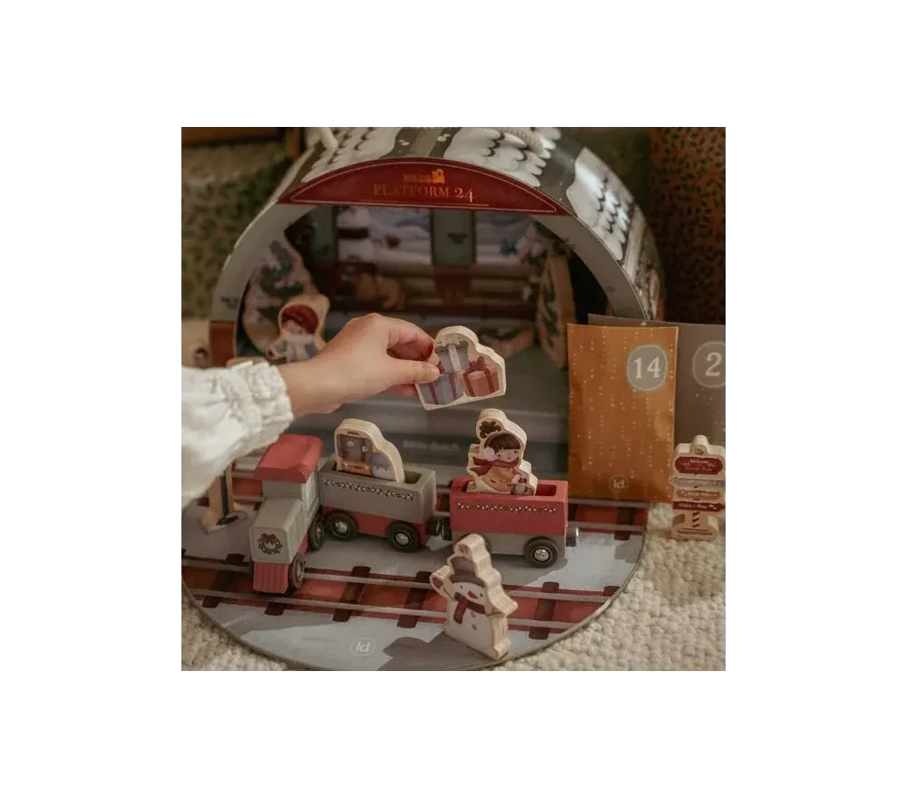 All'interno della meravigliosa scatola illustrata i bimbi troveranno 24 sacchetti con le sorprese per comporre, giorno dopo giorno, un trenino in legno e tutto lo scenario, ricco di dettagli e di personaggi.
