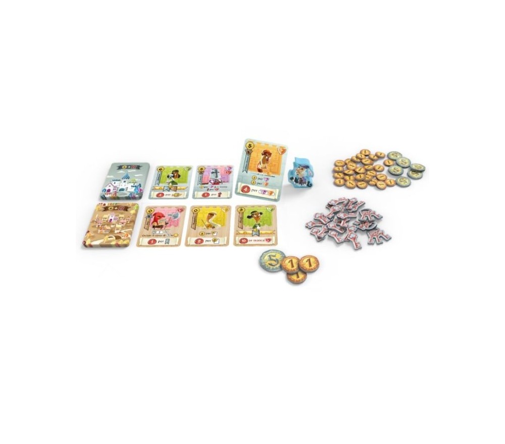 In Castle Combo, il tuo obiettivo è costruire una griglia 3x3 di personaggi, ognuno con abilità uniche che possono essere attivate immediatamente o alla fine della partita. I giocatori iniziano con una quantità limitata di monete da spendere in due mercati aperti: il Castello e il Villaggio. Ogni carta scelta influenzerà le altre nella tua griglia, attivando effetti speciali e bonus che possono cambiare il corso del gioco. La chiave del successo sta nella pianificazione attenta e nella capacità di adattarsi alle mosse degli avversari.