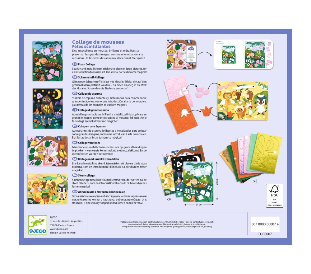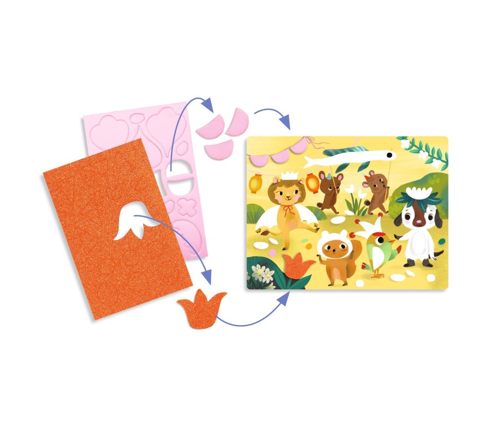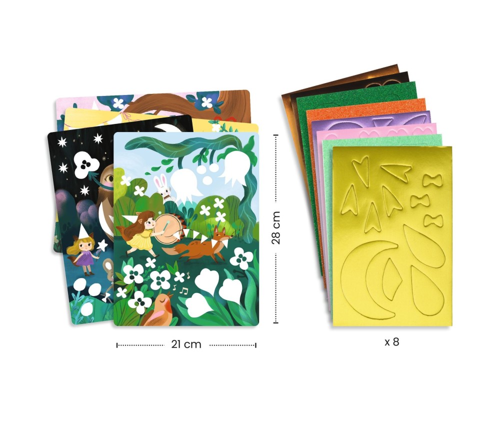Un set per creare 4 quadri incantati, da completare con gli adesivi in gommapiuma glitterati e metallizzati.