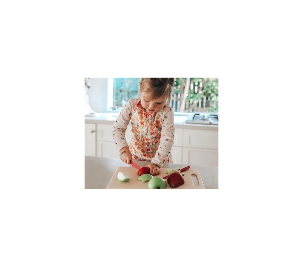 Il design originale della lama permette ai bimbi di tagliare in autonomia i cibi e di aiutare mamma e papà nelle preparazioni culinarie in tutta sicurezza.