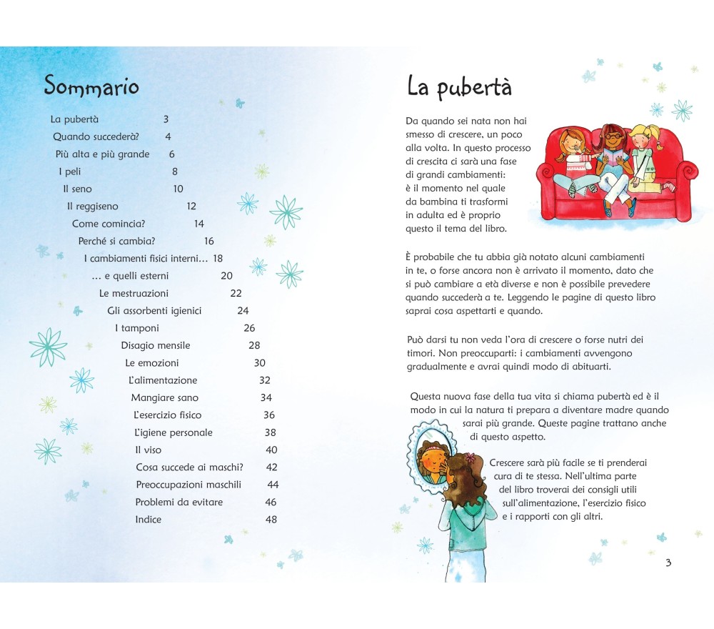 Un libro che spiega alle bambine, con linguaggio e illustrazioni chiari e diretti, quello che succede durante la pubertà, dai cambiamenti fisici a quelli della sfera emotiva.