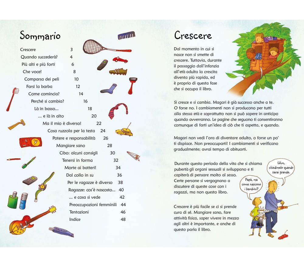 Un libro che spiega ai maschietti, con linguaggio e illustrazioni chiari e diretti, quello che succede durante la pubertà, dai cambiamenti fisici a quelli della sfera emotiva.