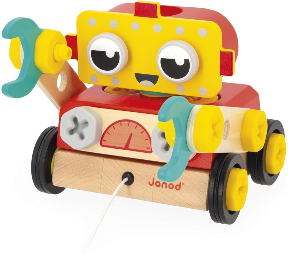 Un gioco perfetto per la motricità fine e la logica. Il robot ha anche una base che permette ai bimbi di trainarlo, per portarlo sempre con sè!