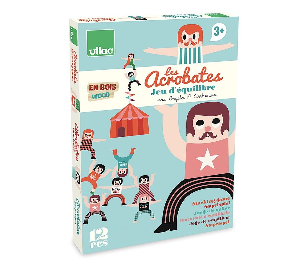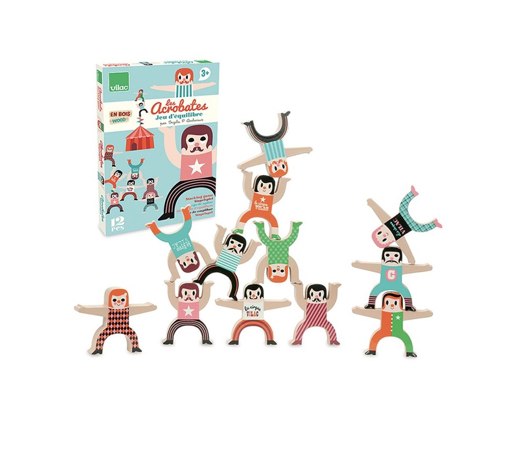 12 fortissimi acrobati in legno, pronti per creare incredibili figure in equilibrio.