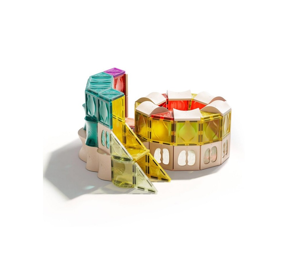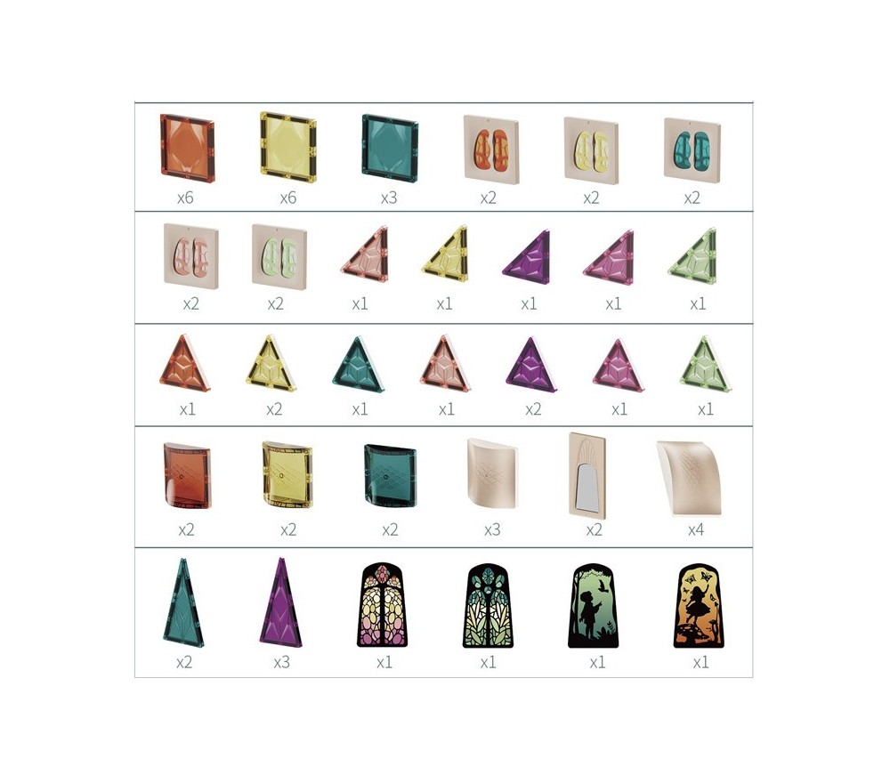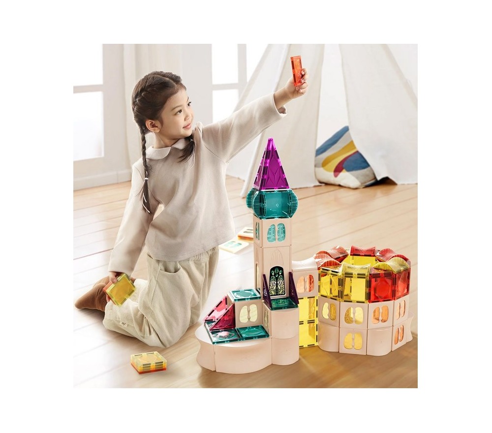 Le forme geometriche sono arricchite da diverse forme dal design unico e speciale che ampliano le possibilità di costruzione. La trasparenza inoltre crea giochi di luce spettacolari!