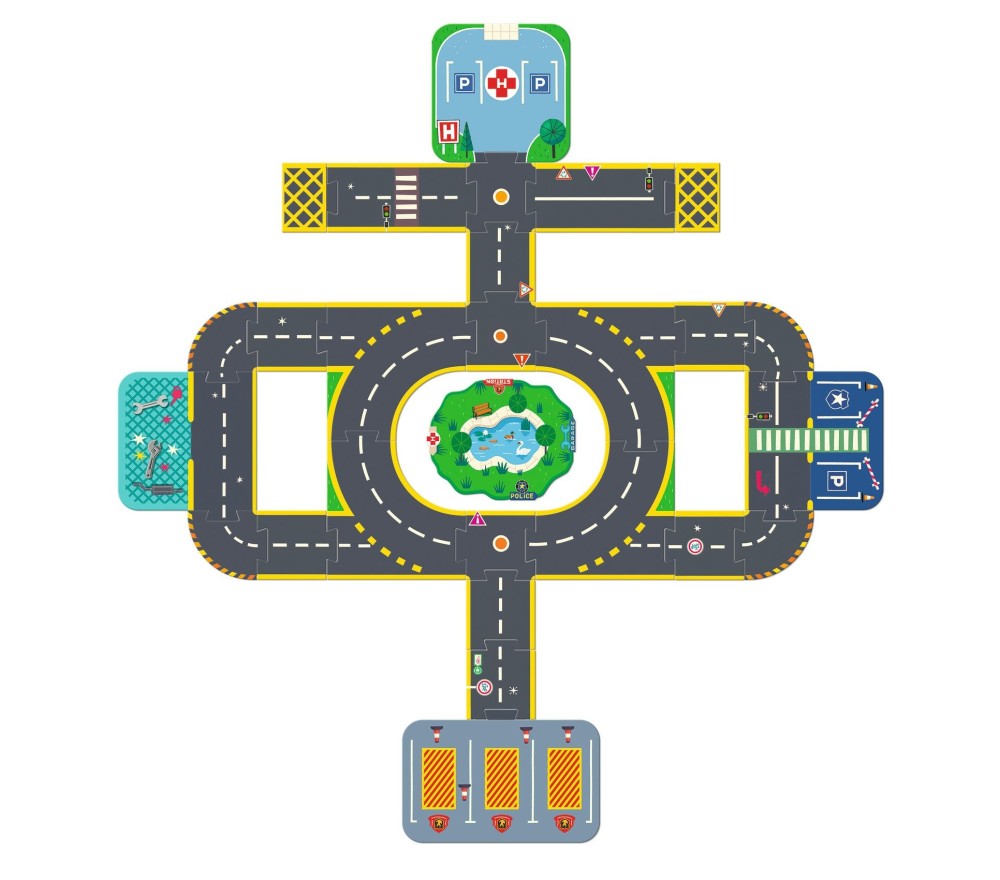 Ecco un altro interessante set che fa parte della linea Crazy Motors di Djeco! Il circuito cittadino Crazy motors è un set di 28 grandi tessere e 6 elementi scenografici nel classico robusto cartone Djeco FSC componibili a piacere e combinabili con altri set uguali.
