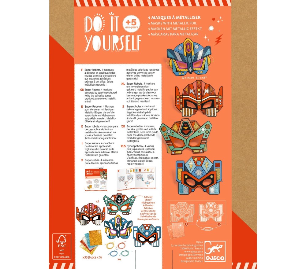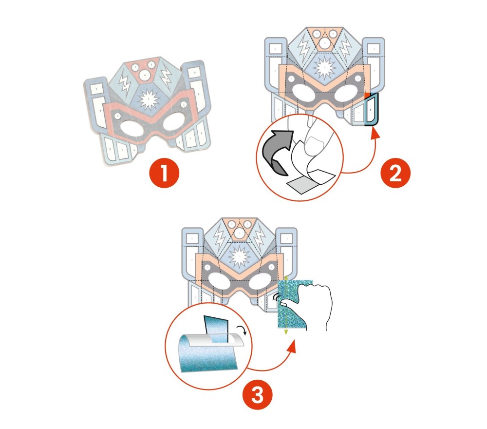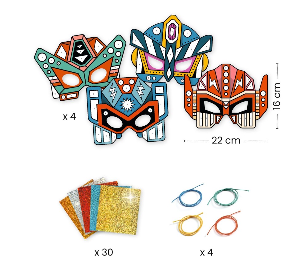 Un set creativo per costruire 4 fantastiche maschere da veri supereroi da rendere speciali con i fogli metallizzati. Un'attività creativa per allenare la manualità e in seguito la fantasia per inventare mille e più avventure!