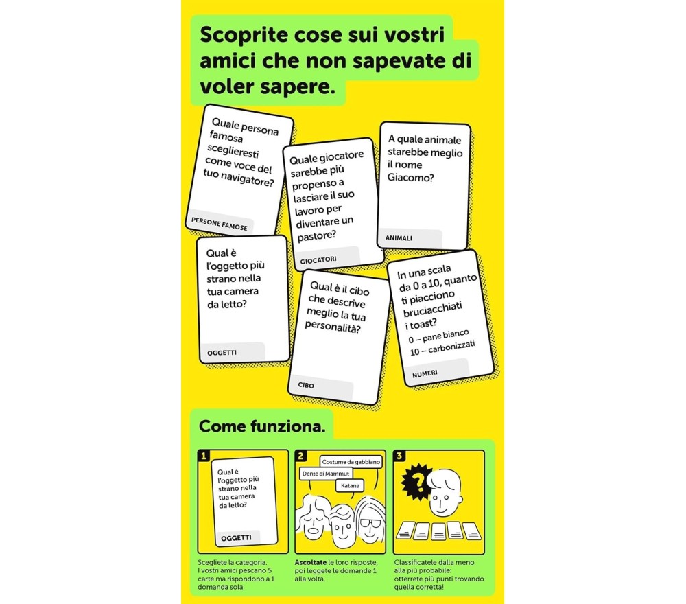 Domande Stupide da Fare ai Vostri Amici è un party game unico che vi permetterà di esplorare gli angoli più nascosti delle menti dei vostri amici.