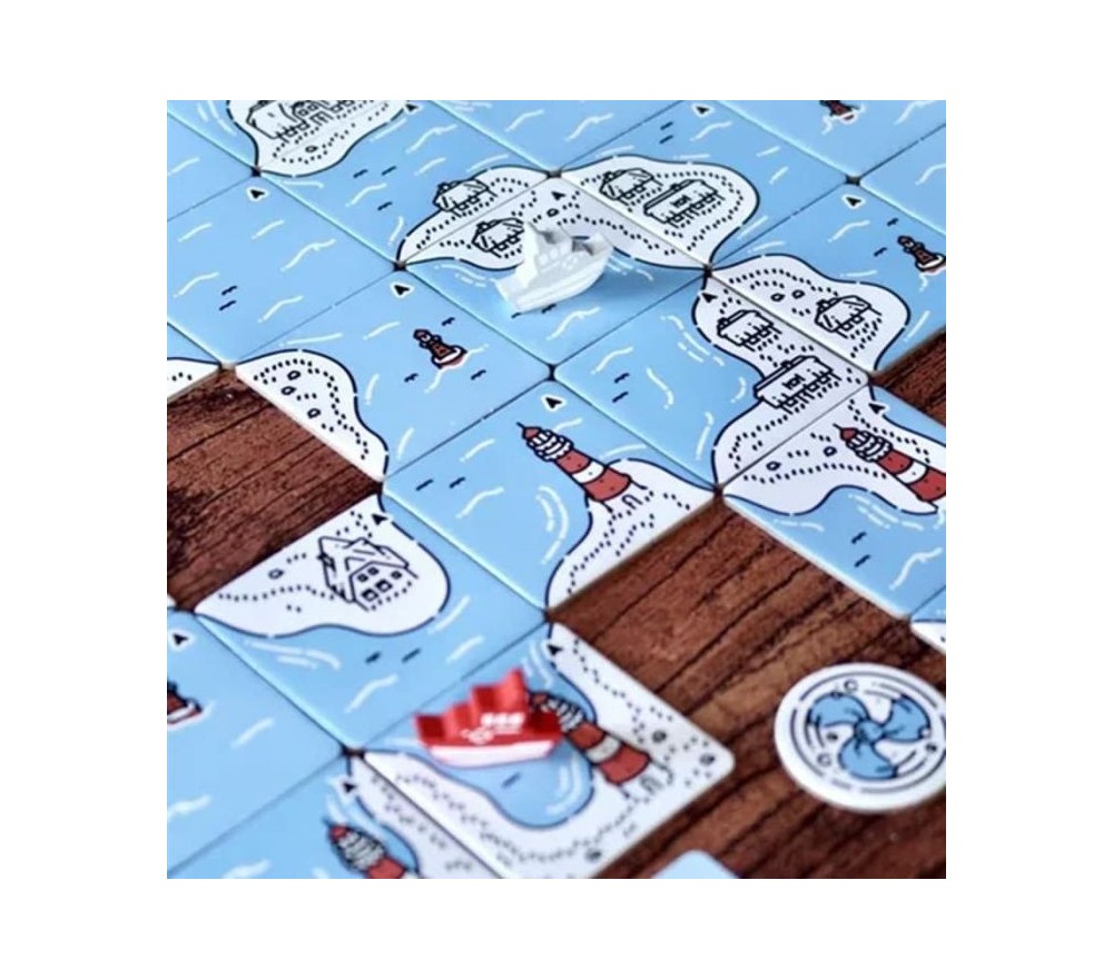 Maggiori punti si ottongono se le tessere contengono fari o boe. Contiene una mini espansione con ulteriori tessere da giocare: le pale eoliche e i moli.