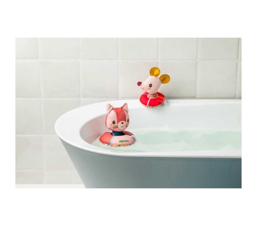 Jeanne il gatto e Nina la topolina galleggiano felici con i loro salvagenti e vivono mille e più avventure che la fantasia del tuo bimbo/a inventerà!