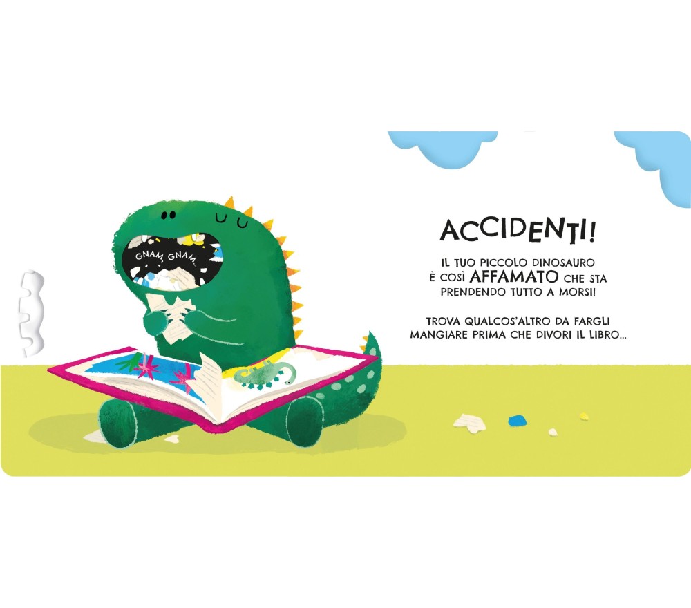 Ecco il dinosauro mangiatutto: i più piccini si divertiranno un mondo a trovargli qualcosa da mangiare! Girando la ruota si scoprirà di cosa va ghiotto... Preferirà palline da tennis, mazzi di fiori o ciambelle glassate? Un libro divertente e interattivo per i bambini più piccoli, in cui sono loro a controllare la storia.
