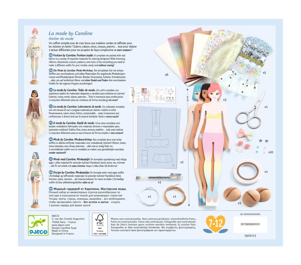 Un cofanetto creativo perfetto per gli stilisti in erba, senza la necessità di usare ago e filo! Con vero tessuto, si potranno creare magnifici outfit senza cucire. Sarà possibile abbellire gli outfit con i numerosi accessori e presentare i modelli facendoli indossare alle bambole che restano in piedi!
