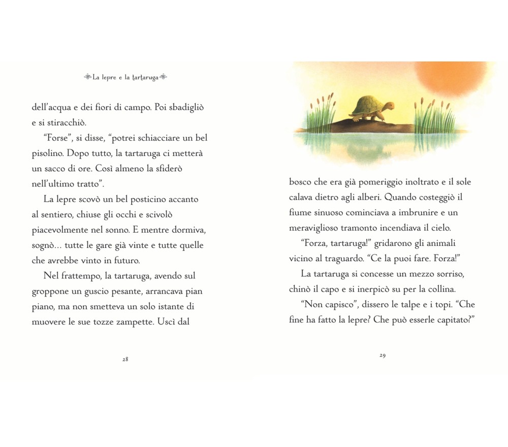 Un prezioso volume che raccoglie oltre 30 favole di Esopo con i personaggi più noti: il leone e il topolino, la volpe astuta, il corvo sciocco e il lupo affamato. Da leggere e rileggere.