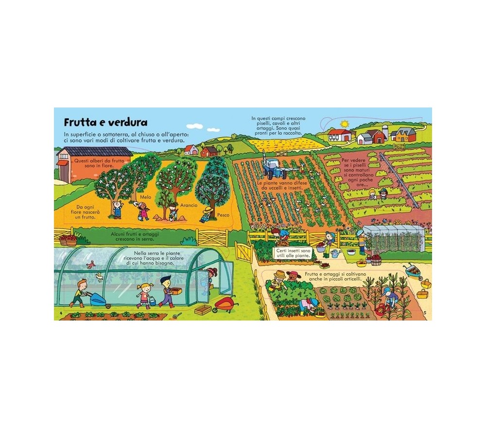 Per i giovanissimi, un simpatico libro che esplora l'argomento cibo e alimentazione, per vedere come dal grano si ottiene il pane, dove si coltivano frutta e ortaggi e come si fa il cioccolato. Oltre oltre 60 linguette da sollevare per scoprire curiosità e informazioni. Perfetto per piccole dita e menti curiose.