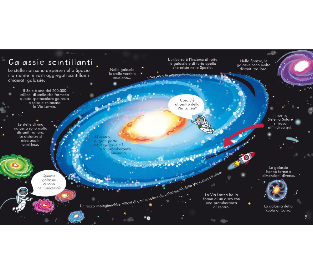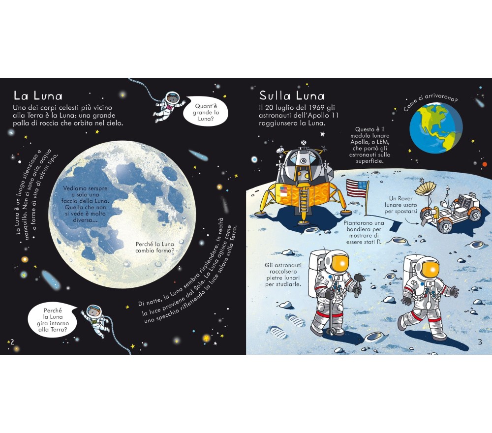 Per i giovanissimi, un simpatico libro che esplora le meraviglie dello Spazio, tra pianeti, stelle e astronauti. Oltre 70 linguette da sollevare per scoprire curiosità e informazioni. Perfetto per piccole dita e menti curiose. Con link internet per approfondire l'argomento.