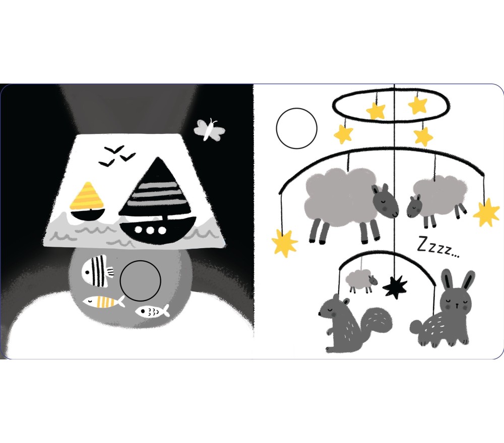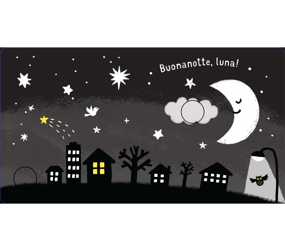 Un bel libro cartonato e fustellato, con semplici illustrazioni sul momento della nanna dai forti contrasti ideali per stimolare lo sviluppo visivo dei bebè.