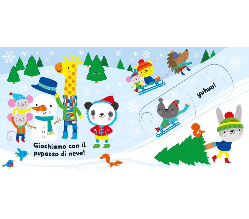 Un bel libro per i più piccoli, con figure coloratissime, percorsi tattili e tante sorprese da scoprire trascinando con il dito gli inserti mobili. I più piccini adoreranno attivare gli inserti mobili per vedere volare babbo natale, colorare le palline dell'albero, scoprire chi vive nella casetta di pan di Zenzero etc...