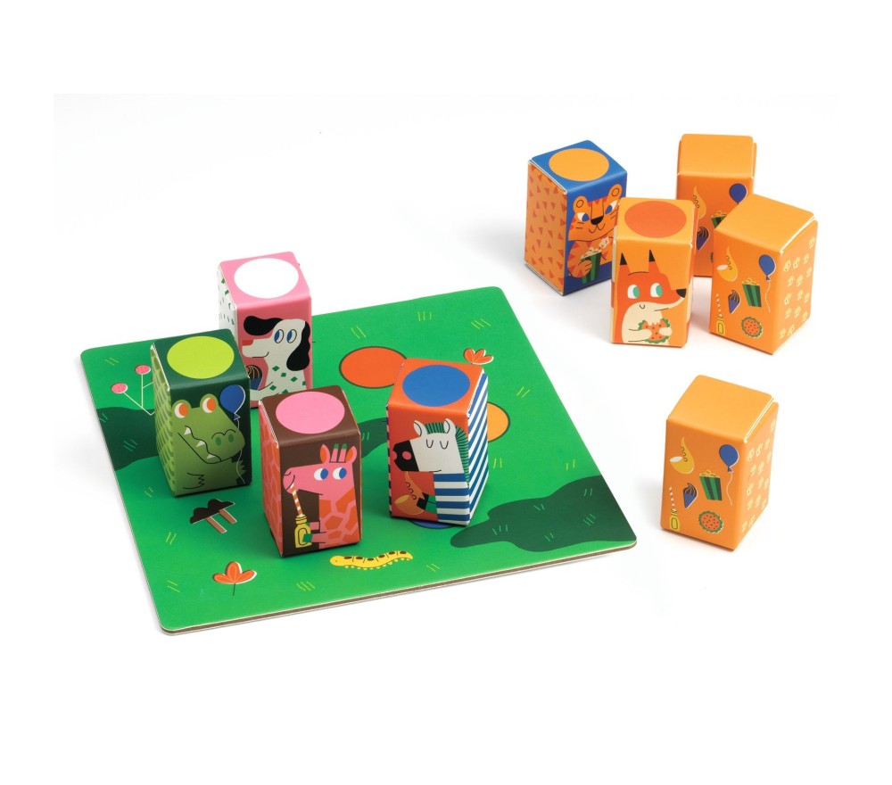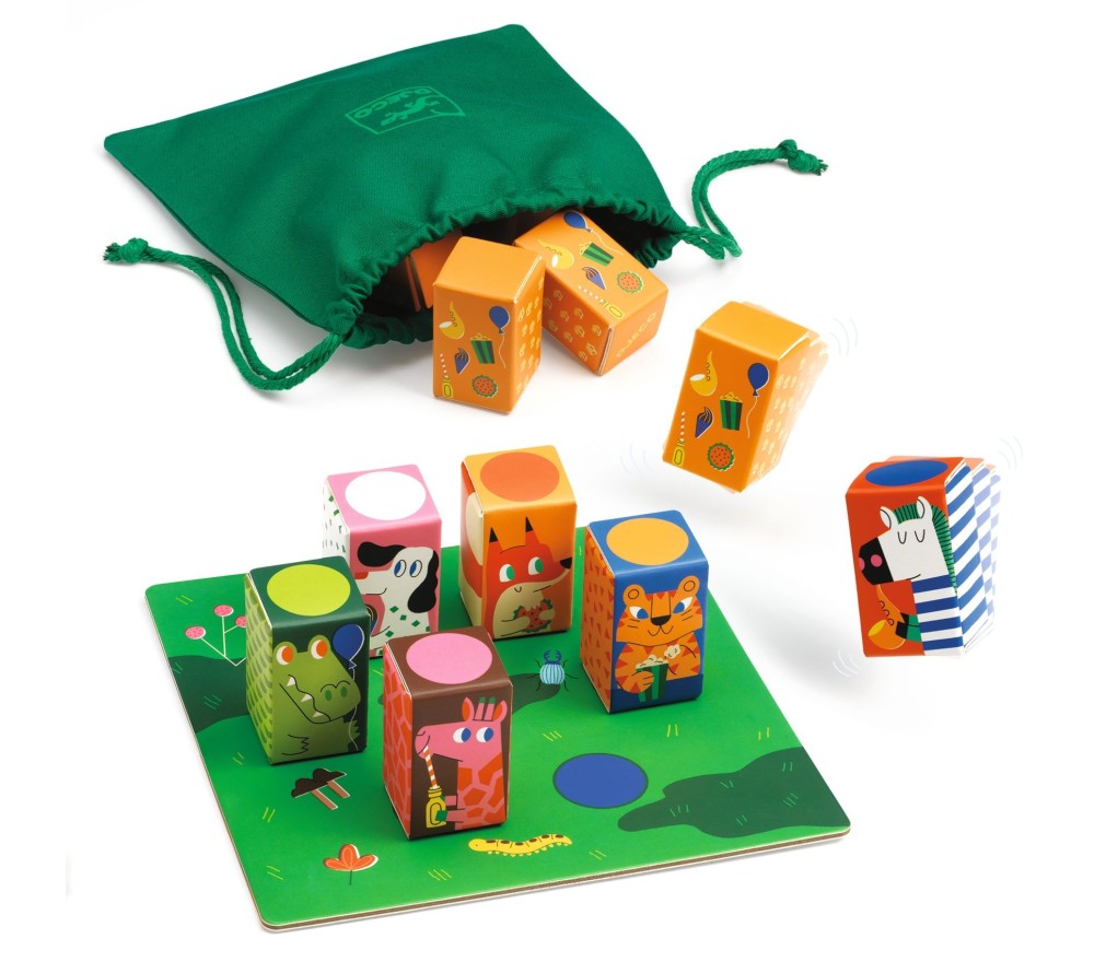 Un gioco di associazione e di memorizzazione sonora. Gli animali si agitano! Trova le coppie sonore e associa il cubo misterioso al suo animale. Per vincere bisogna trovare quanti più cubi-animali possibili.