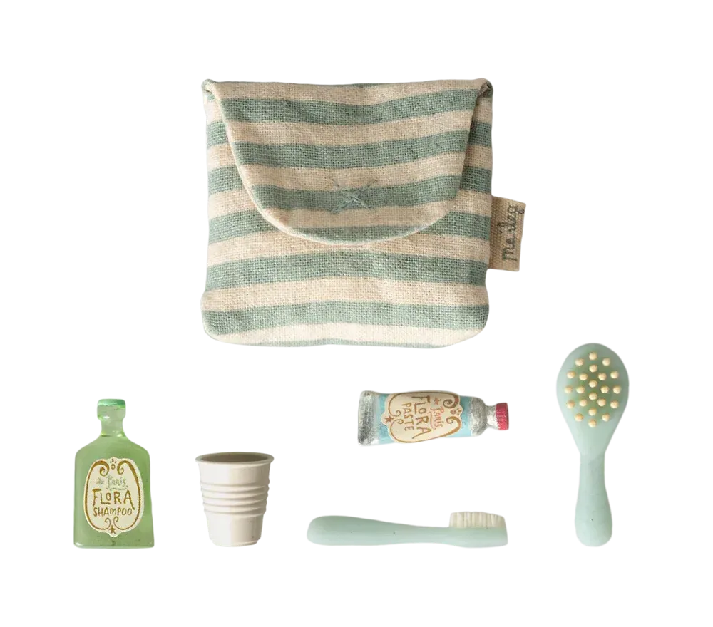 Un originale set da toeletta con il quale i topini potranno prendersi cura di sè. Il set comprende beauty, spazzolino, dentifricio, bicchiere, profumo e specchio.
