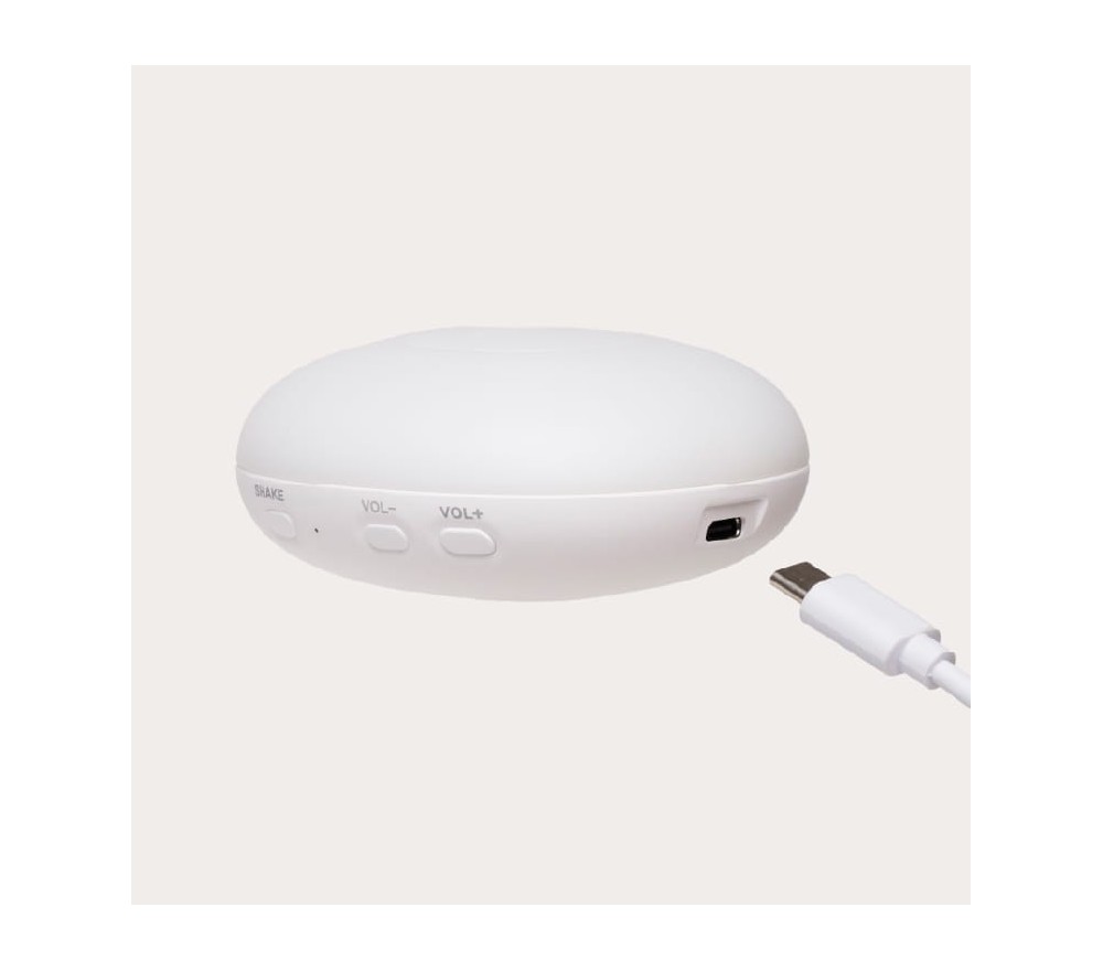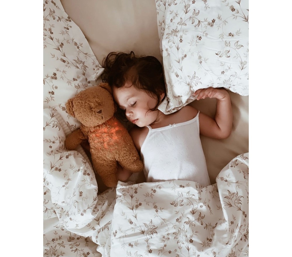 L'orsetto non solo fa da lucina notturna, tenue e calda, ma riproduce anche suoni rilassanti ed è in grado di rilevare il pianto del bambino per attivarsi.