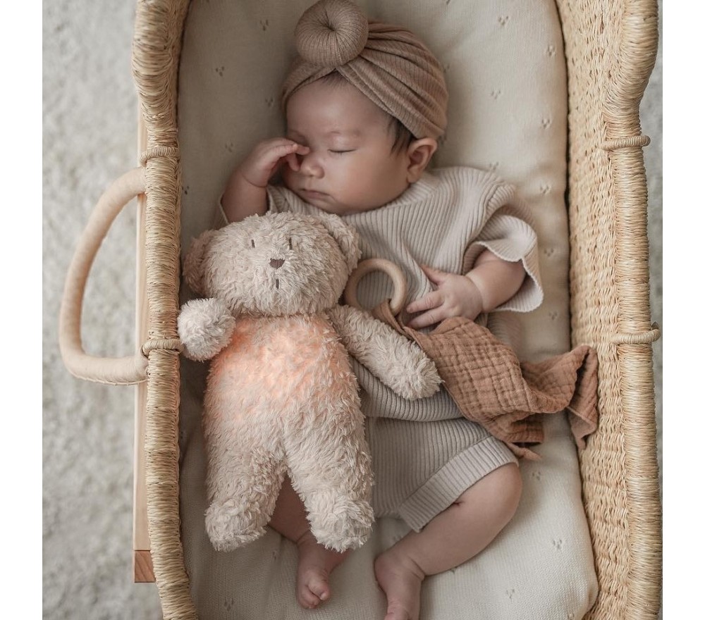 L'orsetto non solo fa da lucina notturna, tenue e calda, ma riproduce anche suoni rilassanti ed è in grado di rilevare il pianto del bambino per attivarsi.
