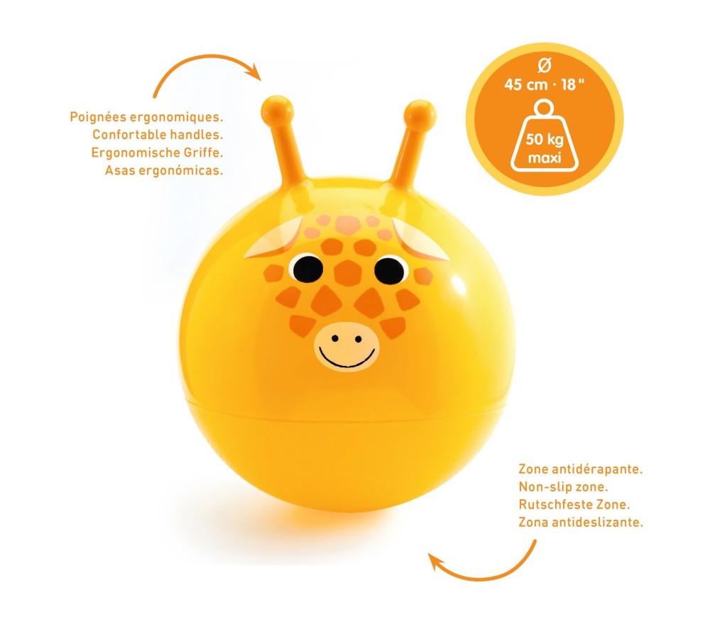 Una palla per saltare, robusta e colorata, per divertirsi e stimolare il movimento e l'equilibrio dei bimbi. Diametro 45 cm. Regge fino a 50 kg.