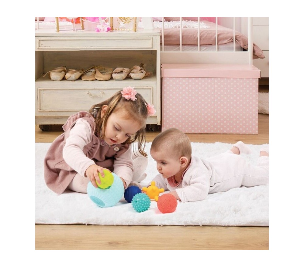 Una divertente palla-puzzle composta da una palla grande e 5 palline sensoriali da incastrare nel posto giusto.