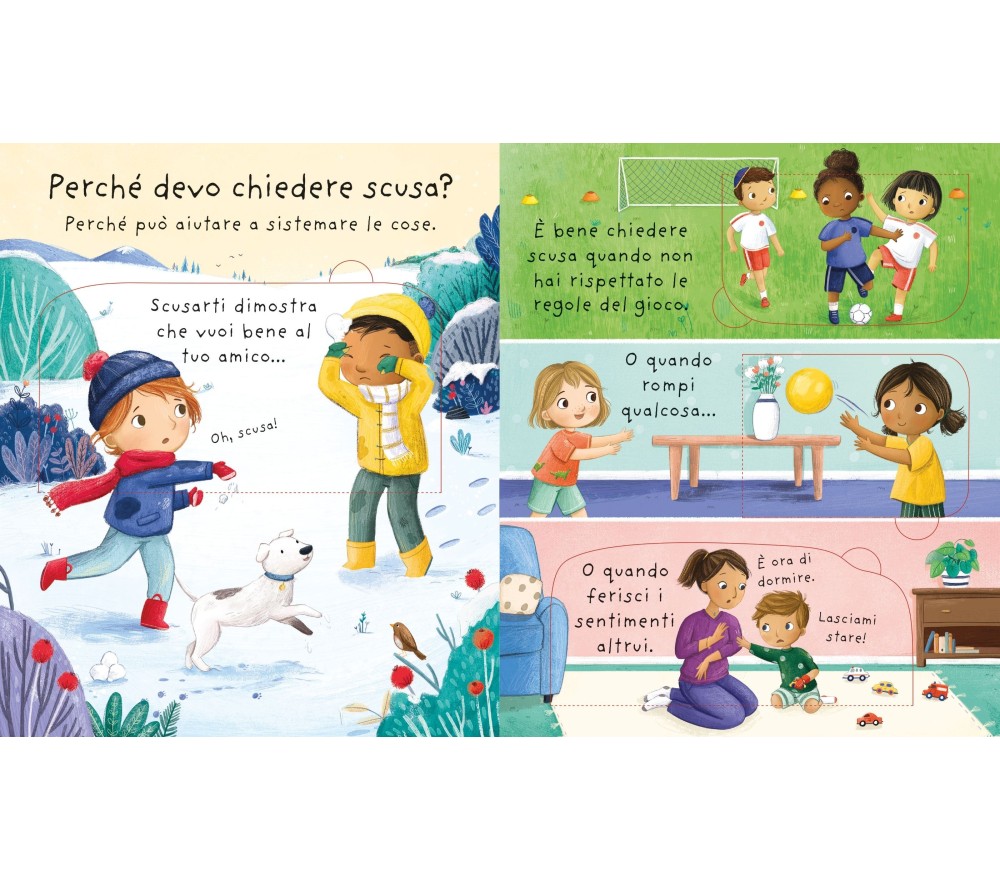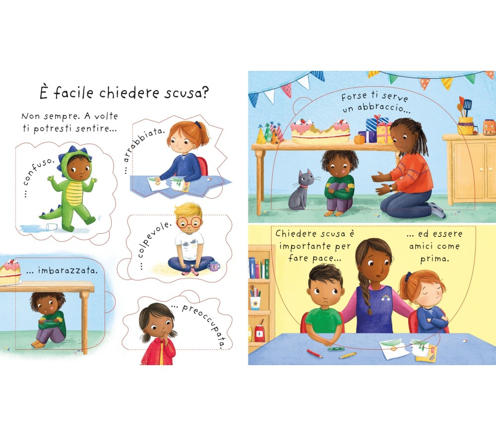 Un libro con alette che esplora il potere del chiedere scusa e spiega quando e come è più giusto farlo. Uno strumento utilissimo per aiutare lo sviluppo sociale ed emotivo dei più piccoli e guidare chiunque abbia a che fare con dei bambini a gestire momenti spesso delicati.