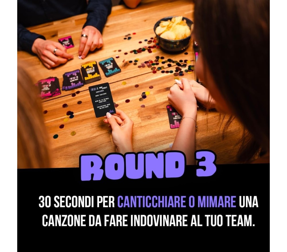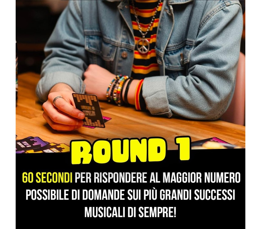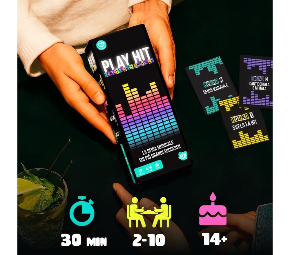 Dividetevi in squadre, accendete la voce (e il cervello) e affrontate 4 sfide diverse che metteranno alla prova le vostre conoscenze musicali, la vostra memoria… e le vostre doti canore! Con un mix esplosivo di quiz, ascolto, interpretazione e canto, Play Hit garantisce risate, imbarazzo e adrenalina in ogni round.