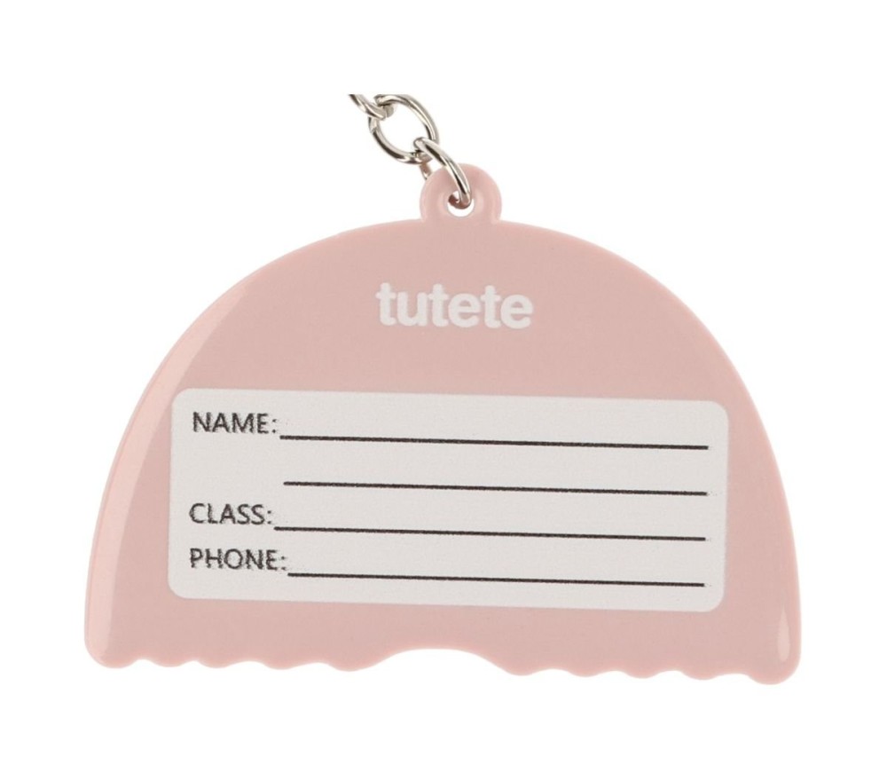 Un portachiavi in morbido silicone con sul retro una targhetta con spazio per scrivere nome, telefono e classe. Con anello e catenella in metallo, per fissarlo in sicurezza dove si vuole: zainetto, borsa, astuccio, chiavi ecc.
