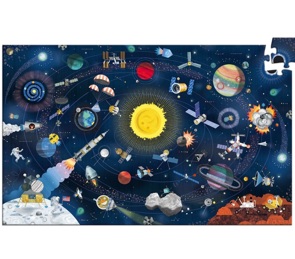 Le 200 tessere compongono una scena ambientata nello spazio con dettagli da cercare, guardare, studiare, imparare... per far volare la fantasia. Nella confezione è compreso un libretto che racconta i principali pianeti, satelliti e curiosità sullo spazio.