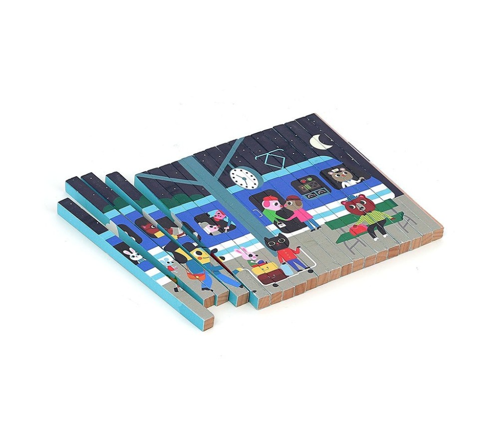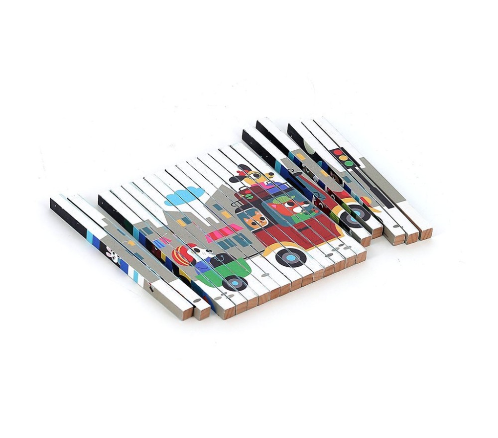 Grazie ai suoi bastoncini di legno, rivela quattro immagini diverse a seconda dell'angolazione. Intelligente e innovativo, include una guida per aiutare il tuo bambino. Un gioco perfetto per stimolare la curiosità e la motricità fine!