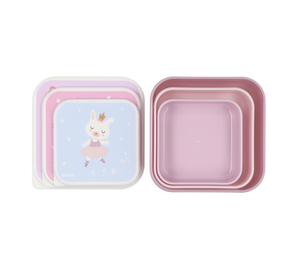 Un set di 3 scatole per alimenti, perfette per portare merenda e snack a scuola così come in ufficio o in giro!