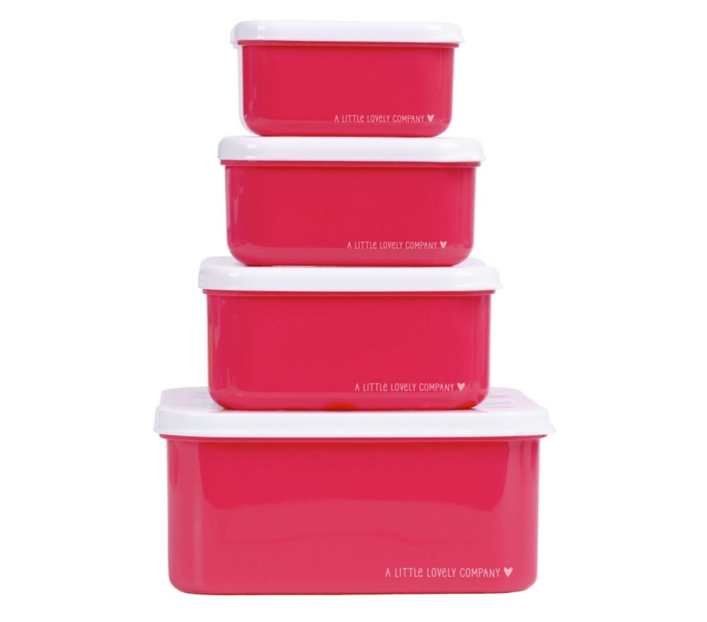 Un set di 4 scatole per alimenti, perfette per portare pranzo, merenda e snack a scuola così come in ufficio o in giro!