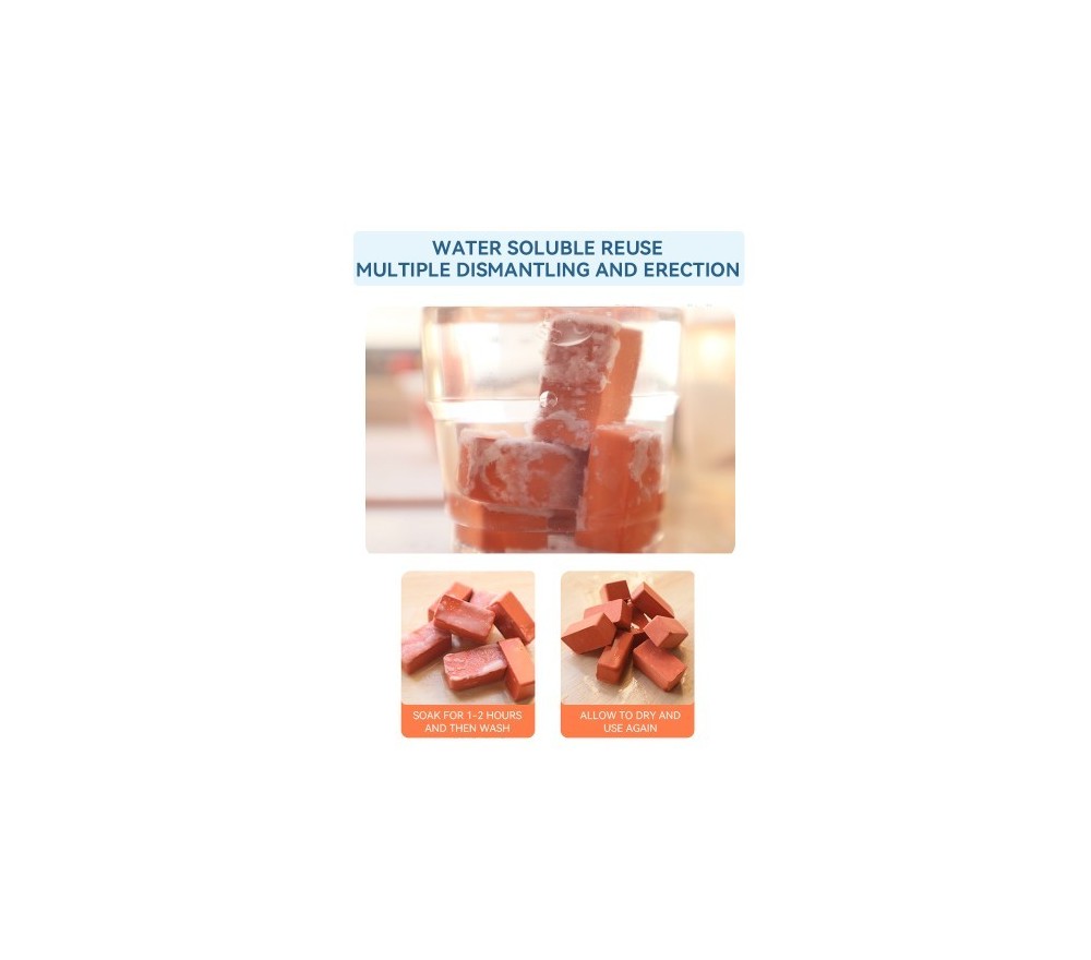 Una volta costruito l'edificio, infatti, sarà possibile immergerlo in acqua: il cemento si scioglierà e si potranno recuperare tutti i mattoncini, per dare vita a tanti altri progetti edilizi!