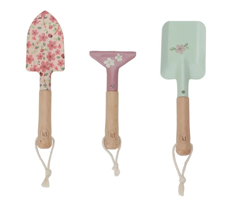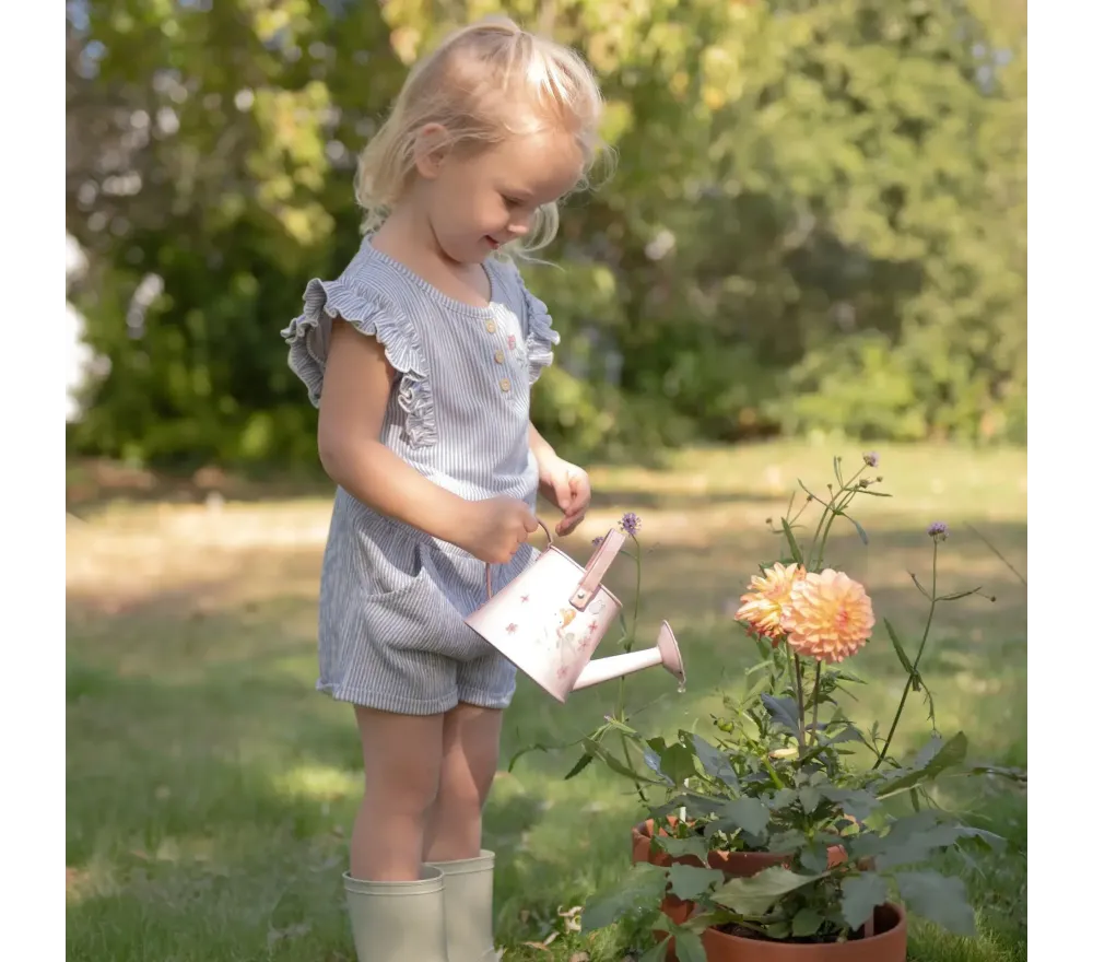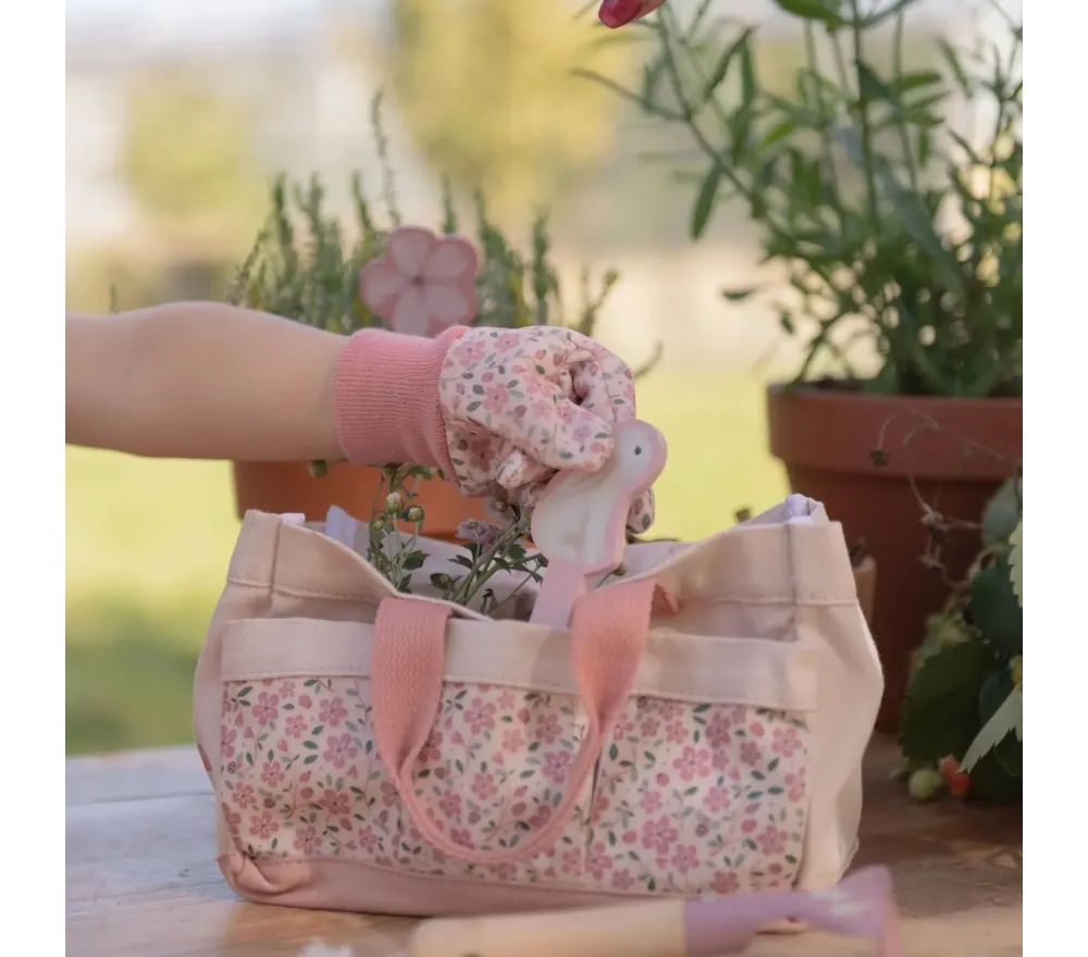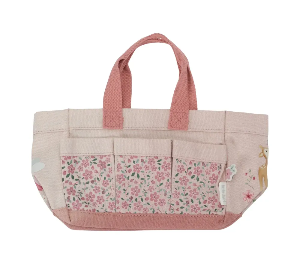 Un set da 10 pezzi, super completo, per i piccoli appassionati di giardinaggio! Contiene tutto l'occorrente: un annaffiatoio, un set di attrezzi, un coppia di guanti, e dei bastoncini in legno per scrivere il nome delle piante. Tutto può essere facilmente conservato e trasportato nella robusta borsa in canvas decorata da meravigliose illustrazioni a tema Fairy Garden. La borsa è ricca di comode tasche, 6 piccole e 2 grandi.
