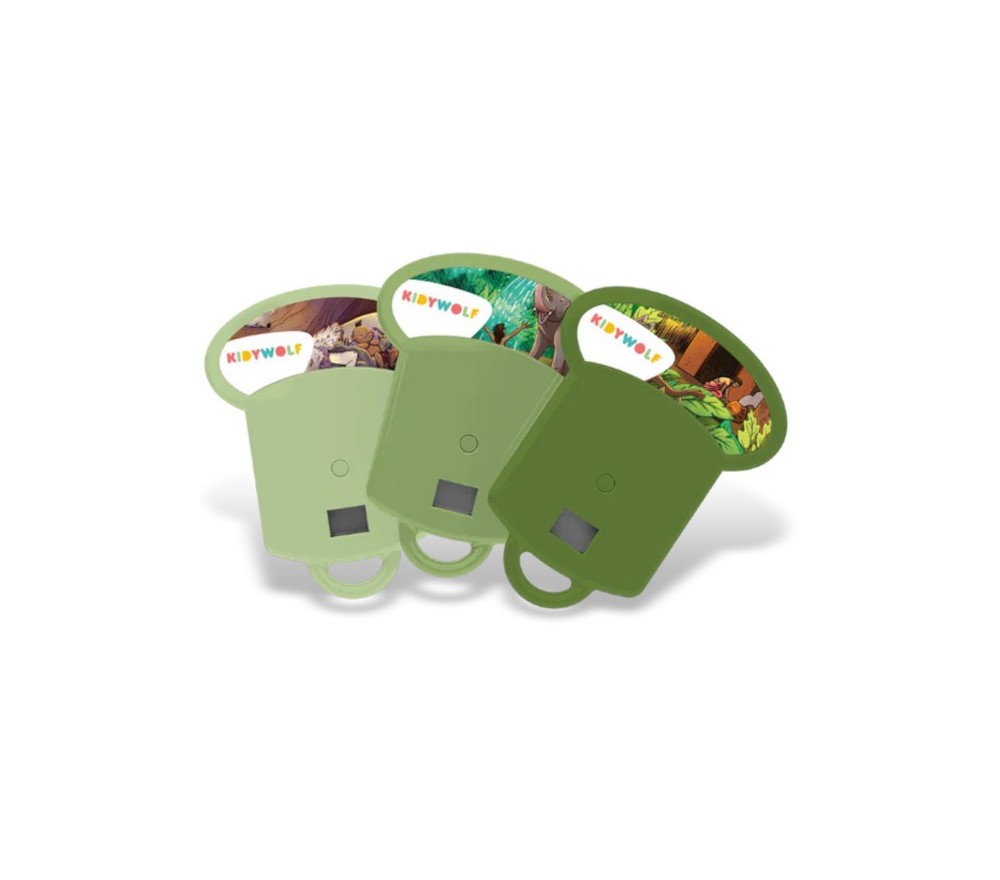 Un set di 3 dischetti con 8 immagini ciascuna, per vivere nuove storie e avventure con il proiettore Kidyslide di Kidywolf.
