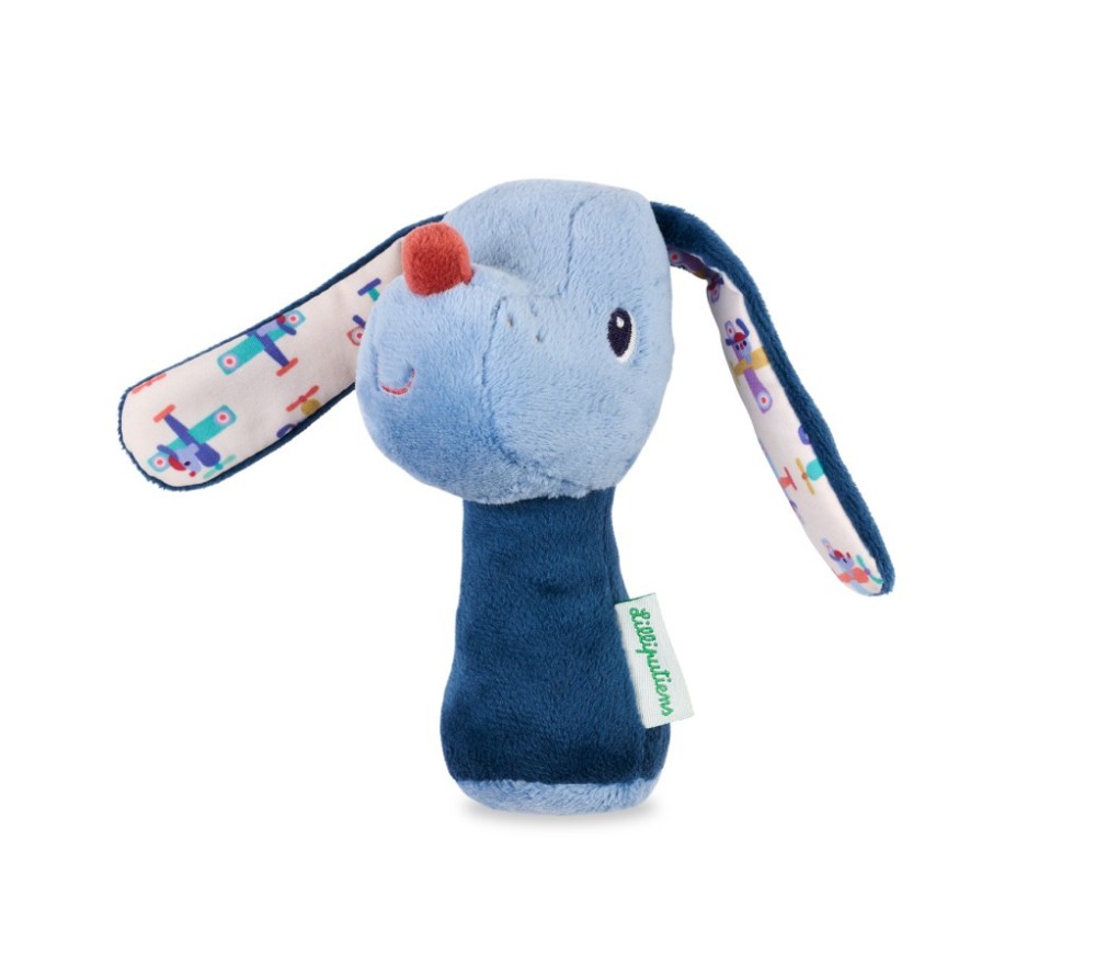 Un simpaticissimo sonaglino con l'allegro cagnolino Jules e un effetto sorprendente: basta scuoterlo o girarlo e si sentirà un buffo suono "piouuu!"