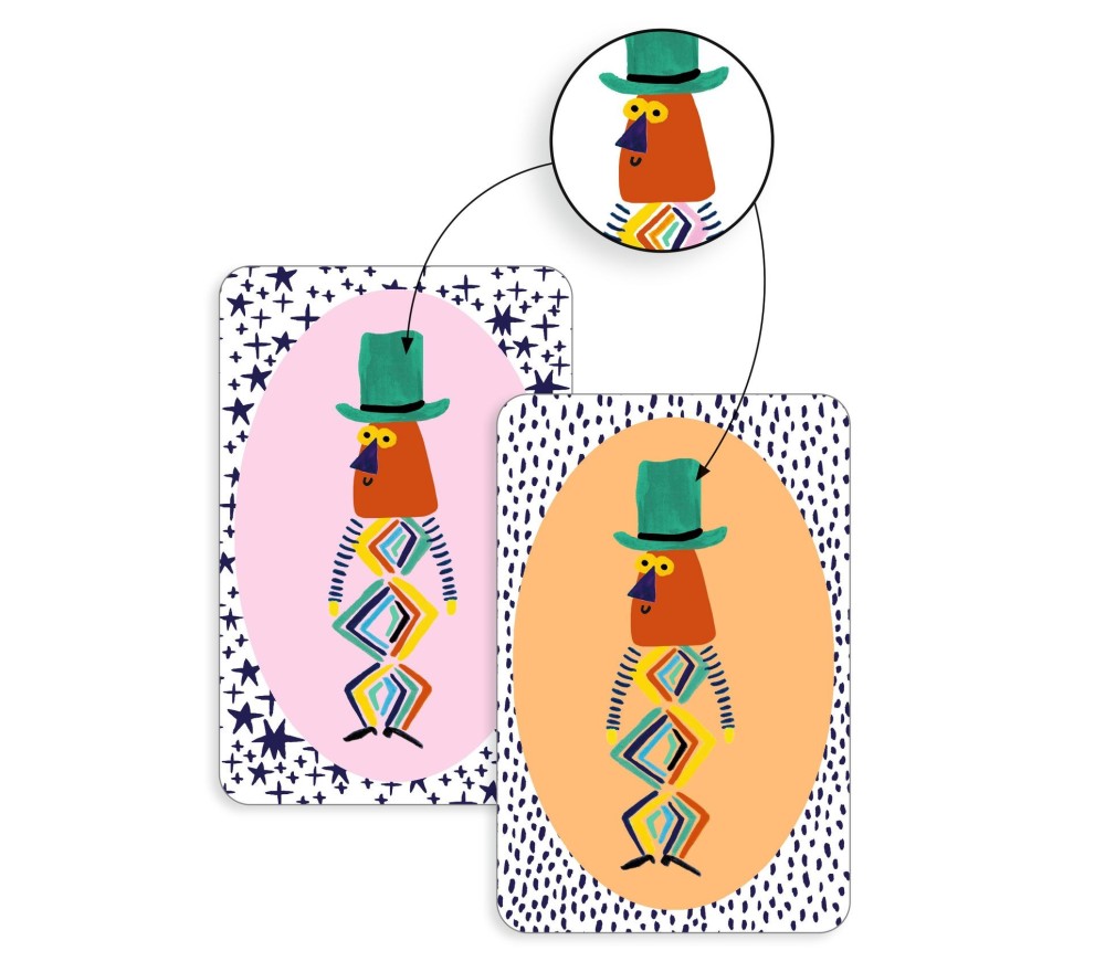 Motivo! Colore! Personaggio! Le associazioni si incatenano e si sciolgono a ritmo delirante. Vince il giocatore che riesce a sbarazzarsi per primo di tutte le sue carte.