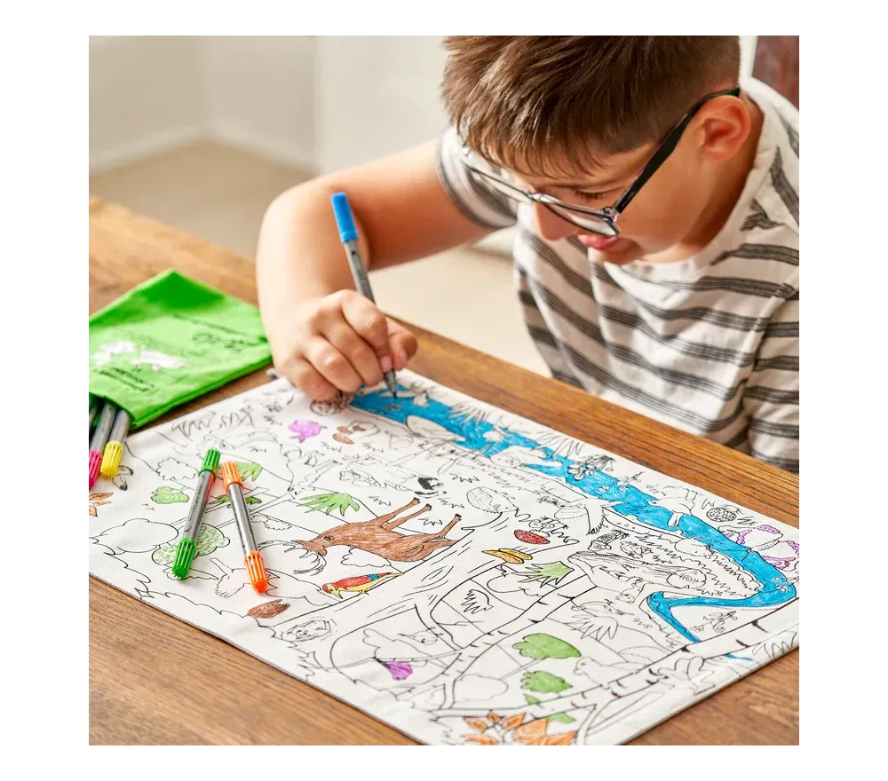 Questa fantastica tovaglietta è tutta da colorare! Grazie ai pennarelli lavabili i bimbi potranno divertirsi a colorare ognuno dei due lati come preferiscono.