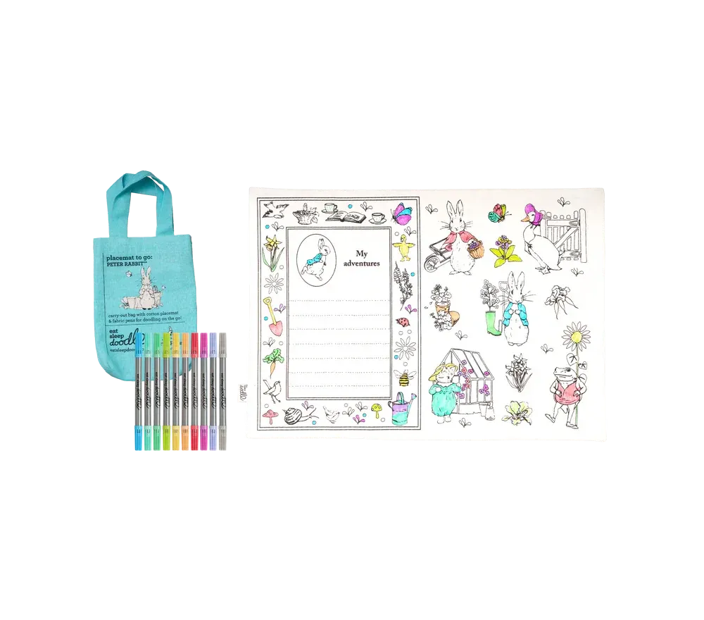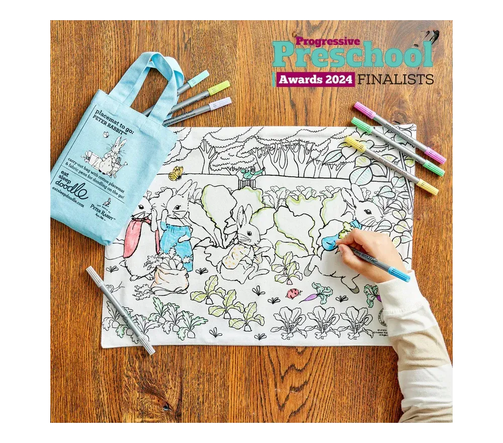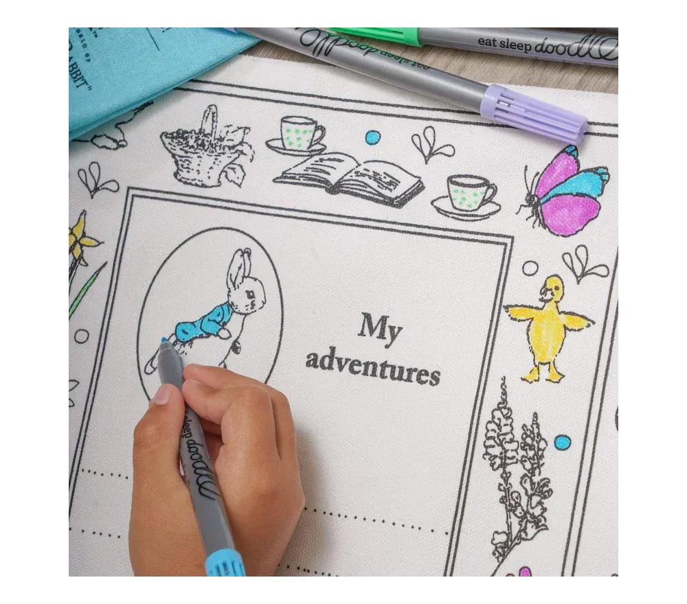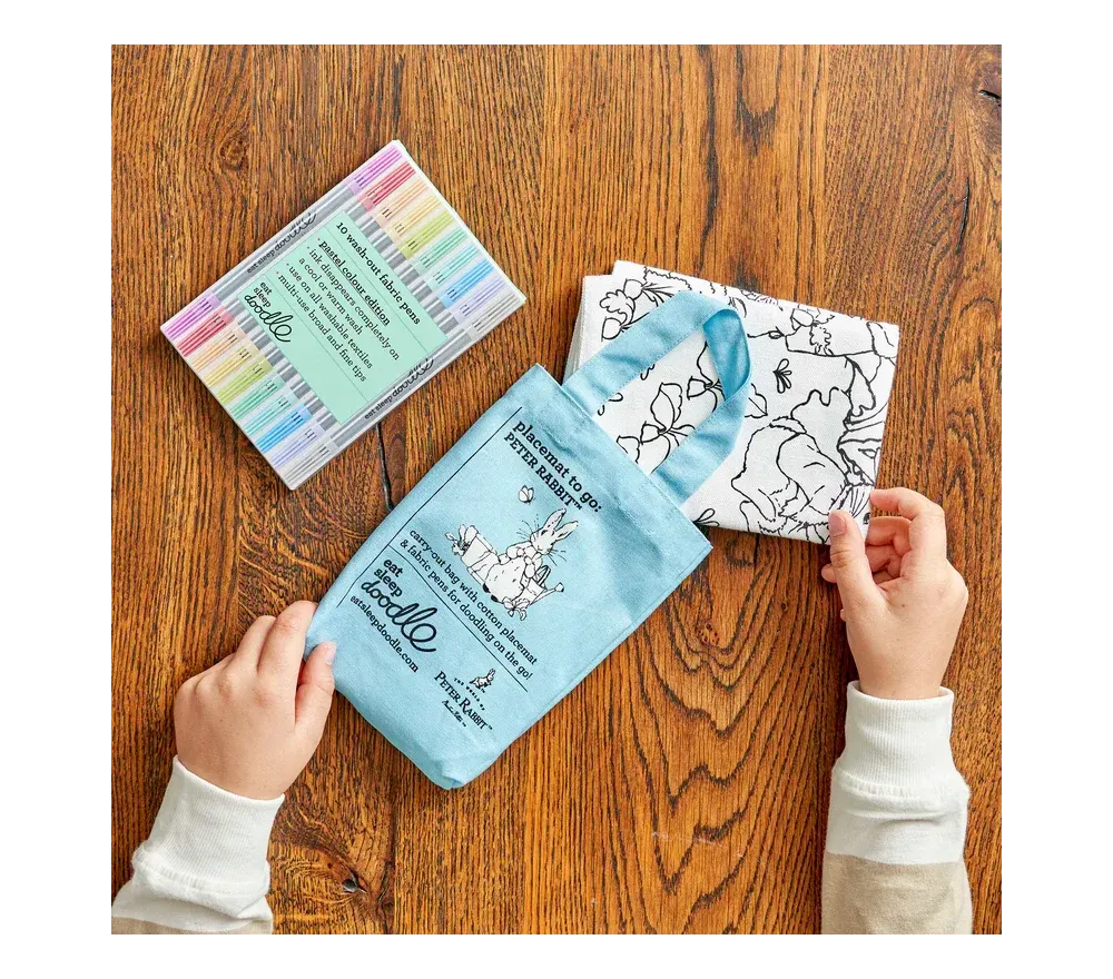 Eatsleepdoodle è una piccola azienda britannica che ha trasformato oggetti utili di uso quotidiano (tovagliette, borse, sacche-zaino) in un'esperienza creativa e super divertente!