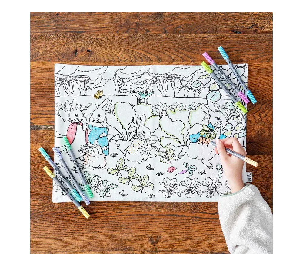 Questa fantastica tovaglietta è tutta da colorare! Grazie ai pennarelli lavabili i bimbi potranno divertirsi a colorare ognuno dei due lati come preferiscono.